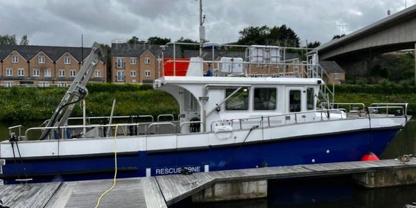 11.7m Aluminium catamaran, 750kg A frame, 500kg Winch, Fibre Optic winch on request, 1.1m draft, 17 knots. Over side pole. MCA Cat 2 - 60NM.